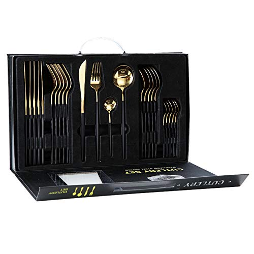 rismart Rostfritt stål 24 delar Bestickset Silversaker Bordsservis inklusive Tabell Knivar Skedar Gafflar Guld Svart