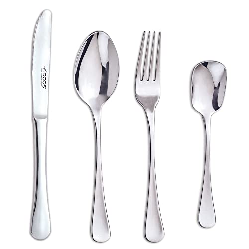 Arcos Madridserie - 16-delat bestick i presentförpackning (4 knivar + 8 skedar + 4 gafflar) - ett stycke monoblock i rostfritt stål - silverfärg