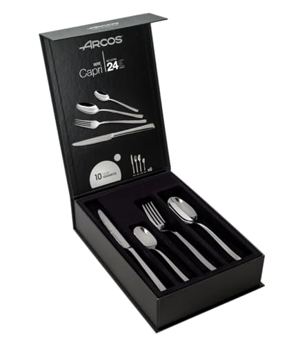 Arcos Bestickset Serie Capri 24 delar (6 knivar + 12 skedar + 6 gafflar) - Monoblock i ett Stycke Rostfritt Stål Silverfärg