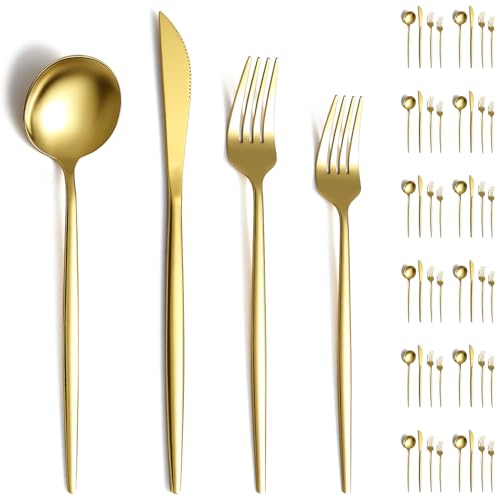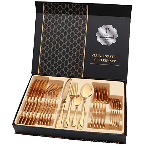 24 delar Rostfritt stål Bestick Silverkärl Bestickset omfatta Knivar Gafflar Skedar Service för 6 Guld