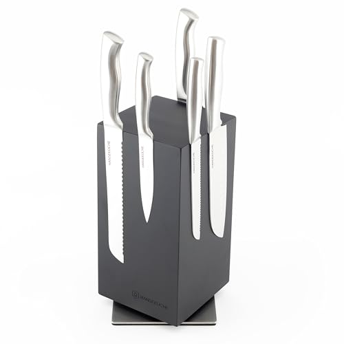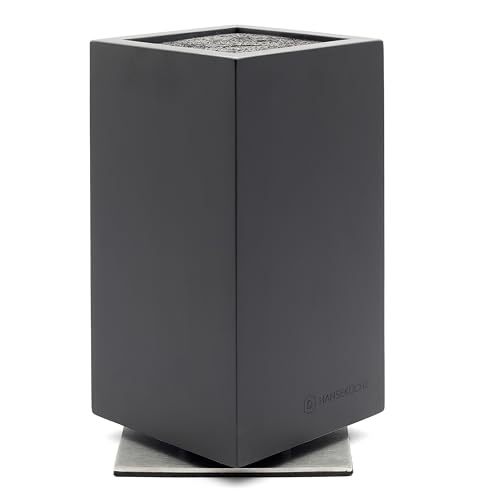 Hanseküche knivblock - knivhållare utan knivar tillverkad av trä (bas i akaciasvart metall, roterande)