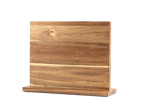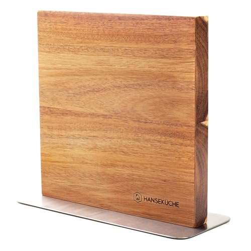 Hanseküche Knivblock, magnetiskt, av akaciaträ – dubbelsidig knivhållare utan knivar, knivbräda av trä som är magnetisk på båda sidorna (Dubbelsidigt trägolv)