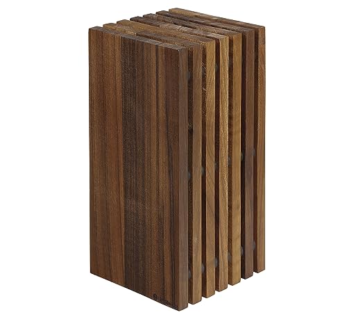Hanseküche Knivblock, magnetiskt, av akaciaträ – dubbelsidig knivhållare utan knivar, knivbräda av trä som är magnetisk på båda sidorna (Fyrkantig fasad)