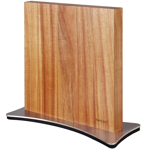 Hanseküche Knivblock, magnetiskt, av akaciaträ – dubbelsidig knivhållare utan knivar, knivbräda av trä som är magnetisk på båda sidorna (Dubbelsidig metallbas)