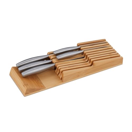 Relaxdays Knivhållare låda, för 12 knivar och brynstål, bambu knivblock liggande, H x B x D: 5 x 43 x 23 cm, natur
