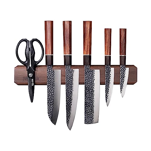 SOSmart24 Snittkonst 40 cm magnet knivlist av högkvalitativt valnötsträ utan borrning – extra starka neodym-magneter – exklusiv kniv magnetlist, knivblock, magnetisk knivhållare