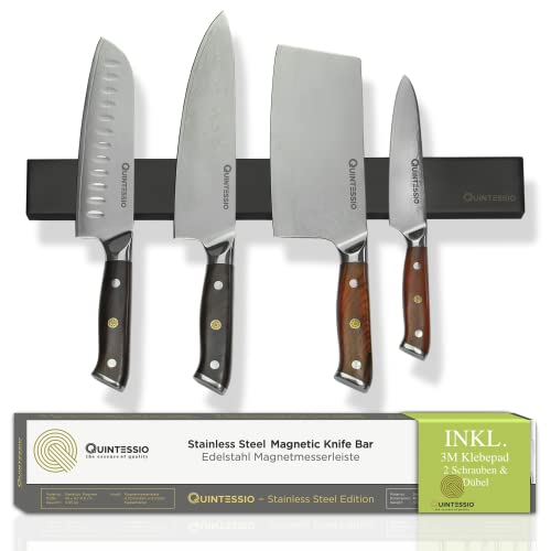QUINTESSIO - Magnetisk knivstång för limning eller borrning - magnetisk knivstång i rostfritt stål 40 cm - magnetisk knivskena - magnetisk knivlist - svart