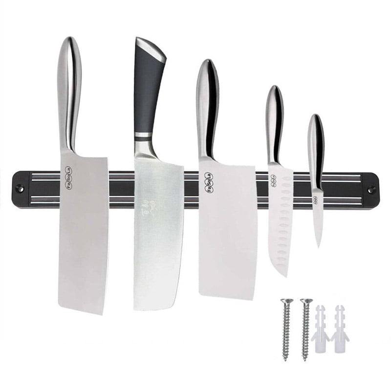 WwuHua Magnetisk list kniv, 40 cm knivhållare magnetisk, dubbla rader av knivhållare, knivlist magnetisk med 4 krokar, knivhållare för kök, garage, kontor
