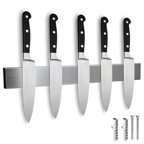 COM-FOUR® knivmagnetremsa av rostfritt stål för väggmontering - magnetiskt knivblock - 40 cm knivlist för köket - mångsidig magnetskena - knivhållare (1x rostfritt stål 40cm)