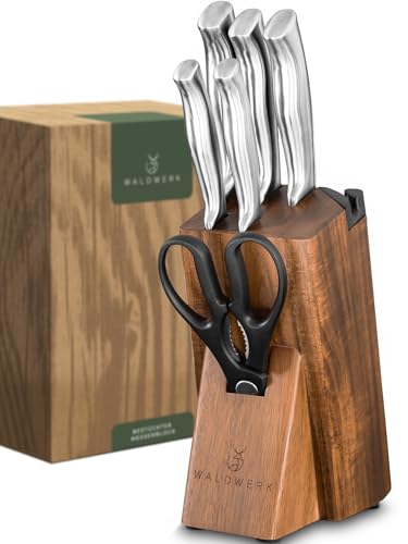 WALDWERK Trä Knivblock – 7-delar knivset med knivblock och inbyggd knivslip – Knife Block with knifes – Kökknivsset – Knivset med block – Knivset