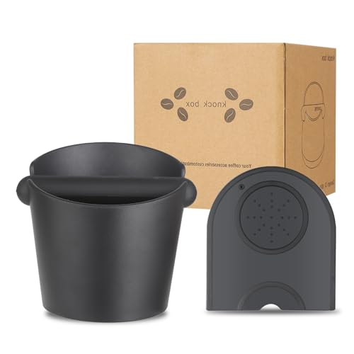 Normcore Knocklåda för espresso, knockbox under kvarn och med stötdämpande avtagbar slagstång och halkfri bas, 304 rostfritt stål, storlek: S