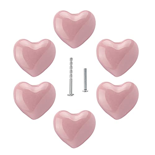 YOUYOUULU 6 stycken hjärtformade keramiska knoppar för barn, keramiska knoppar handtag, möbelknappar, för lådor, skåp, dörrar, sovrum, köksmöbler, med 2 typer skruvar (rosa)