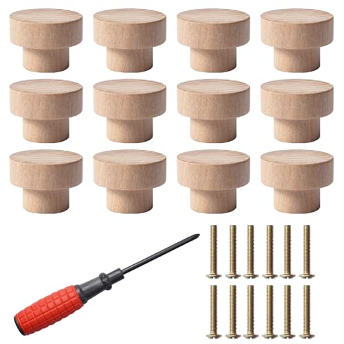 Jinsion 12 stycken möbelknoppar i trä, trädörr, lådhandtag, knoppar för skåp och lådor, skåpknappar med skruvar, träknappar för byrå, möbler