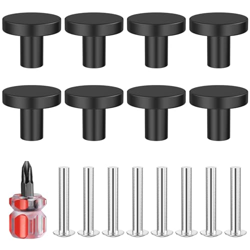 Lectorias 8 st. möbelknoppar, 25 x 20 mm lådknoppar, runda svarta knoppar, möbelhandtag med skruvar, skåpknoppar, möbelhandtag, för skåp, byrå, kök