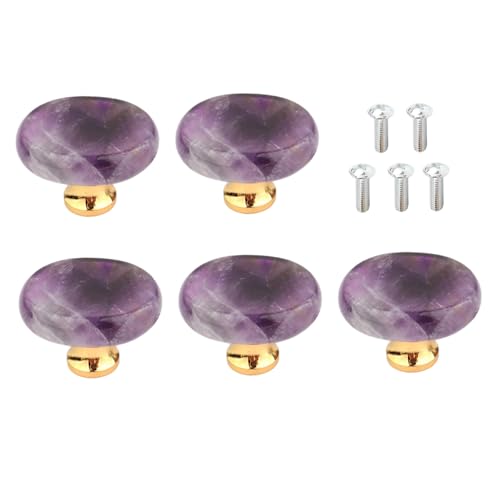 Jeorywoet Byrå knoppar, 5 st lådknoppar naturlig ametist byrå, ovala dekorativa lila lådhandtag för skåp möbler