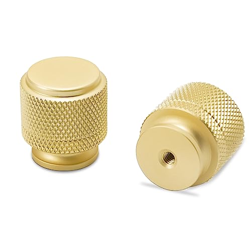 COTYKILEY 10-pack borstad mässing köksskåpsknoppar guld räfflade låda drar lådknoppar byrålade knoppar guldskåp hårdvaruknoppar för byrålådor