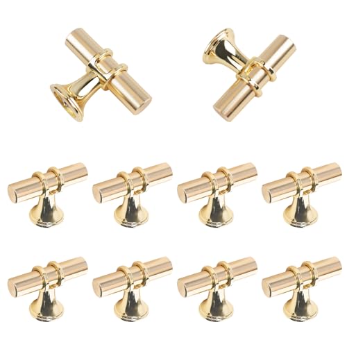 MOROBOR Borstad mässing enkelt hålsknopp, 10 st moderna T-knoppar skåpstånghandtag, dragknoppar, skåphårdvara för byrålådor, köksskåp (guld)