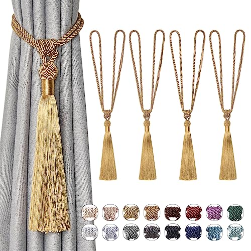 Pretty Jolly 4-pack långa gardinomtag handgjort flätat rep, knut, draperi, europeisk stil, dekorativa fönsterdraperi för hem och kontor (brons)