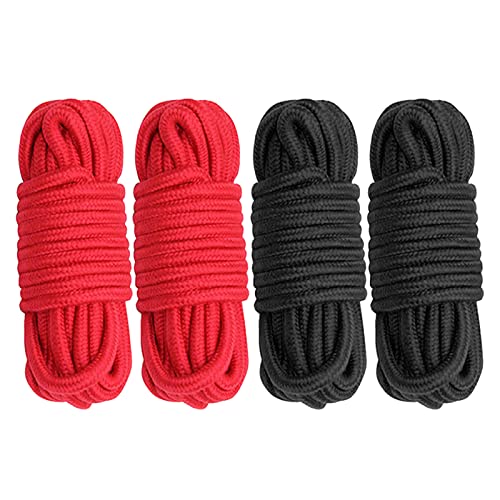 Cosymate mjukt bomullsrep bindande rep för alla ändamål tjock bomull tvinnad knut knytrep, 8 mm diameter, 5 m lång, 4-pack, svart och röd