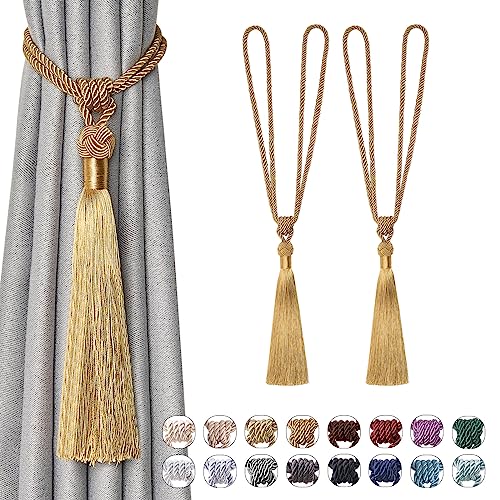 Pretty Jolly 2-pack långa gardinomtag handgjort flätat rep, knut, draperi, knytband i europeisk stil, dekorativa fönsterdraperi (brons)