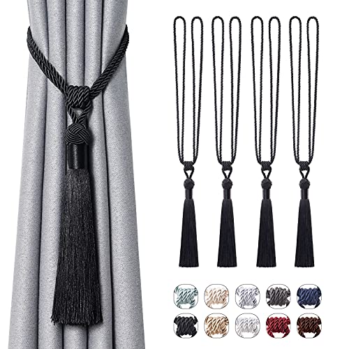 Pretty Jolly 4-pack långa gardinomtag handgjort flätat rep knut draperi baksidor europeisk stil dekorativa fönsterdraperi (svart)