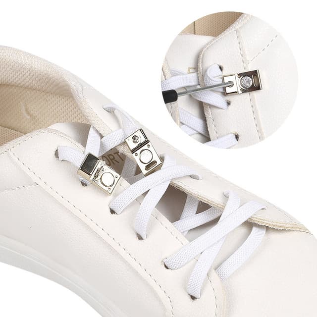 Elastiska knytfria skosnören med lås 1 par Vit