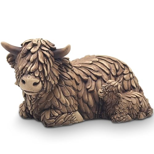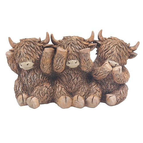 Mindre & Pavey Highland Cow Trio av Happy Highland Cow | Uppsättning av 3 lekfulla Highland Cow Figuriner | Knasig harts skotsk ko dekor | Rolig bondgård eller rustik hemaccent för visningshyllor