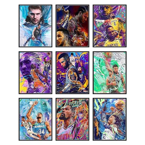 BigWig tryck basketaffisch set – Kobe Bryant affisch, Lebron James affisch, Steph Curry affisch, basketaffischer för pojkar sovrum, Nba-affisch, basketboll väggkonst – utan ram uppsättning av 9 (8 x