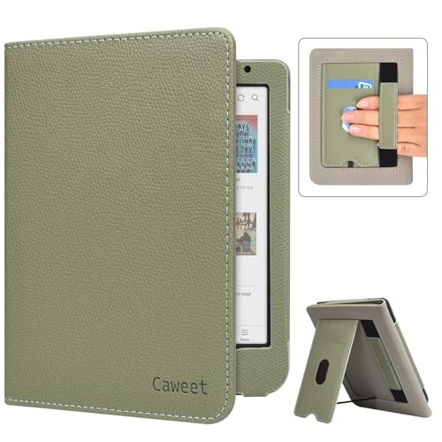 Caweet Hölje för Kobo Clara Colour/BW/2E och Tolino Shine Color/Shine 5(2024)/Shine 4(2022), Fällbar Stödhölje med KortSlot, Handrem och Auto Sleep/Wake, Grön