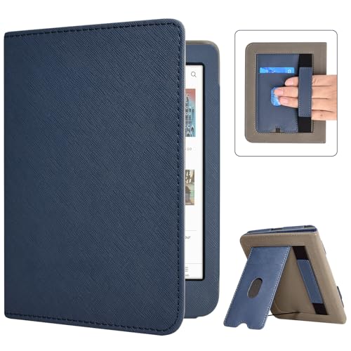Caweet Hölje för Kobo Clara Colour/BW/2E och Tolino Shine Color/Shine 5(2024)/Shine 4(2022), Fällbar Stödhölje med KortSlot, Handrem och Auto Sleep/Wake, Blå