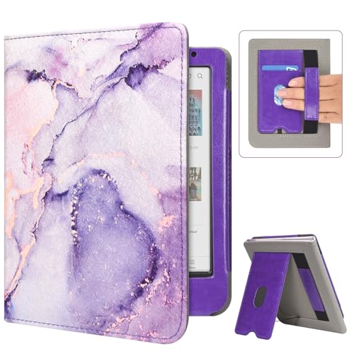 Caweet Hölje för Kobo Clara Colour/BW/2E och Tolino Shine Color/Shine 5(2024)/Shine 4(2022), Fällbar Stödhölje med KortSlot, Handrem och Auto Sleep/Wake, Lilamarmor