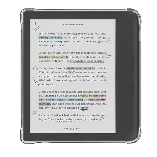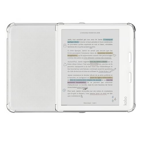 VOVIPO Genomskinligt fodral för Kobo Vågen Färg (2024)/Kobo-Vågen 2 (2021) eReader 7 tum, Ultra Soft Flexibel TPU Skin Bumper Förstärkt bakstycke Hörn för Kobo Libra Color-CR
