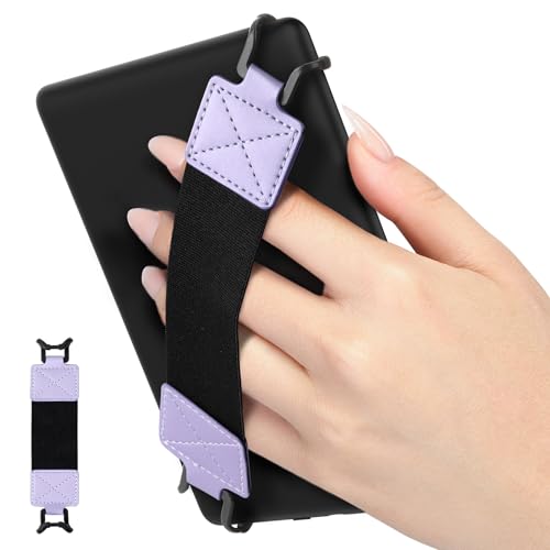 MoKo Security Hand-Strap for 6-8" Kindle eReaderFire Tablet, Kindle/Kobo/Voyaga/Lenovo/Sony Kindle E-Book Tablet, Elastic Versatile Hand Strap Lightweight Finger Grip Holder, Black Belt, Taro Purple