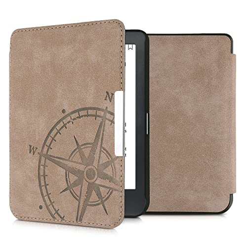 kwmobile fodral kompatibelt med Kobo Clara HD – konstläder eReader skyddsfodral – kompass vintage brun