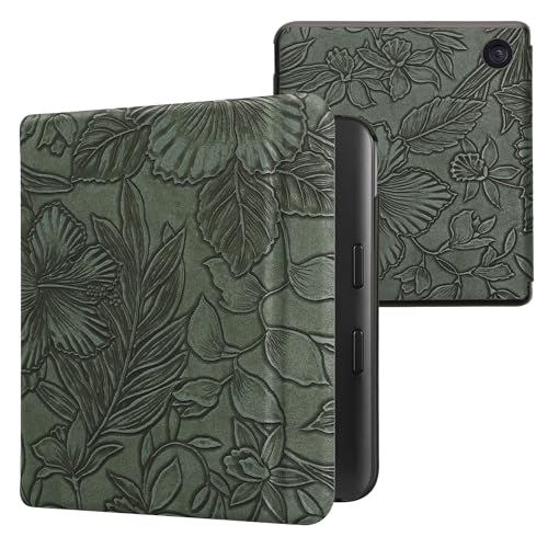 kwmobile fodral kompatibelt med Kobo Libra färgfodral – läsplatta fodral – prägling blommor grön