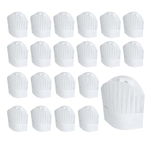 20 stycken, set med pappersmössor, kockmössa, vit kockmössa, kockmössa, kockmössa, kockmössa, män, kockhatt för kvinnor, kockhatt för män, kvinnor, kockhatt, bagarmössa, lämplig för kök