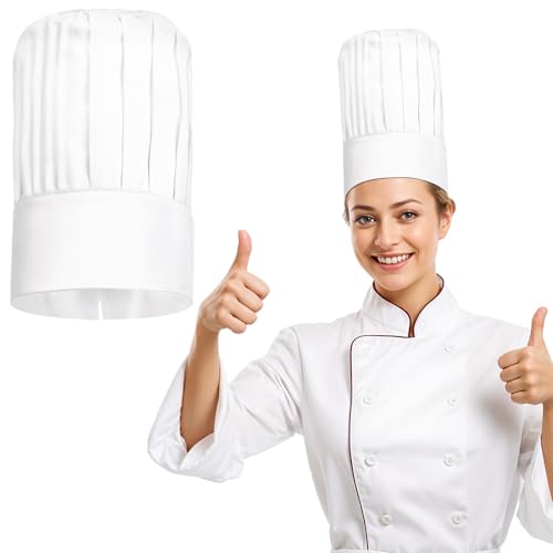 KBNIAN 2 st kockhatt justerbar elastisk kök kockmössa med andningsbar bomullsuniformer bagare matlagningshatt för vuxna hus hotell restaurang användning, Vitt, 41