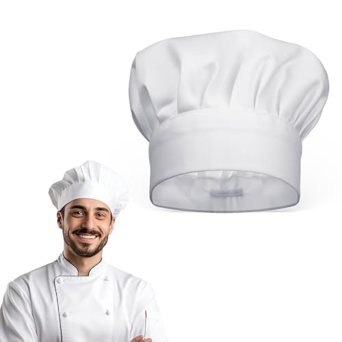 ZEYIYER Kockmössa, vit, 29 cm, kockmössa, unisex, kockmössa, herr, kockmössa, dam, justerbar kockhatt, bomull, kockhattar, professionell kockmössa, hårnät, kök, Vit, L