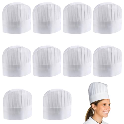 Ksvaye 10 stycken kockmössor engångs kockhatt kockkockkockhatt vuxen unisex bagarhatt kockhatt för män kvinnor kök hotell bakning restaurang matlagning (vit), Vit