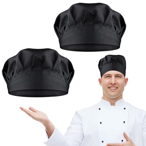 TIESOME 2 stycken kockmössor för män, justerbar bomull gastro-hattar, kockmössa, ventilerande köksuniform, mössa, kockhatt för bakning fest, matlagning restaurang, svart, 58