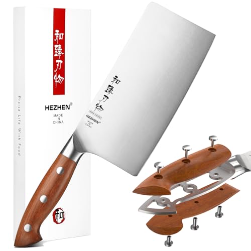 HEZHEN Grönsaksyxa18 cm, professionell kinesisk kockkniv, tysk vass kökskniv, grönsaks- och köttskärkniv, ergonomisk rödträdskniv