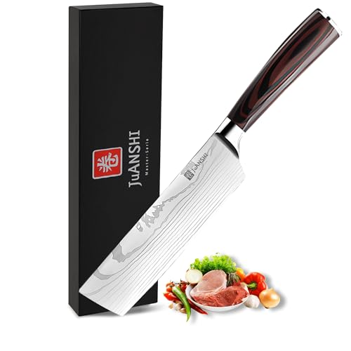 JUANSHI® Professionell Nakiri kniv 18 cm blad asiatisk kniv högkvalitativ kökskniv i rostfritt stål med paketkagrishandtag, kockkniv, presentbox-förpackning