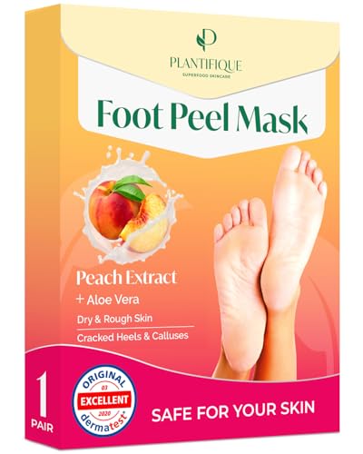 PLANTIFIQUE Foot Peeling Mask - Peach Fot Peeling Mask 1-pack Dermatologiskt testad, återställer Torra Hälar, Tar Bort Torr Hud för Babymjuka Fötter - Exfolierande Peeling Naturlig Behandling