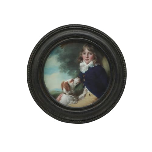 SYLVIA'S SHOP 3 x 3 liten vintage rund bildram, mini antik svart grå utsmyckad cirkel fotoram, för bordsskiva och väggvisning, retro heminredning, gammaldags fotogallerikonst