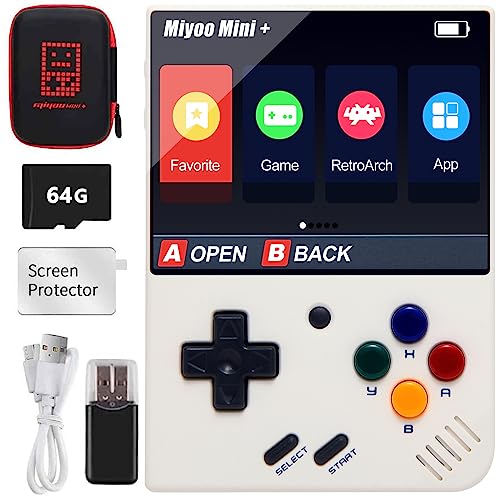 Miyo Mini Plus handhållen retro spelkonsol, inbyggt 64 G TF-kort, 7 000 klassiska spel, 3,5 tums IPS-skärm, stöder WiFi, med förvaringsväska (vit, 64 G)