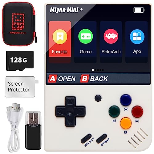 Miyo Mini Plus handhållen retro spelkonsol, inbyggt 128 G TF-kort, 15 000 klassiska spel, 3,5 tums IPS-skärm, stöder WIFI, med förvaringsväska (vit, 128 G)