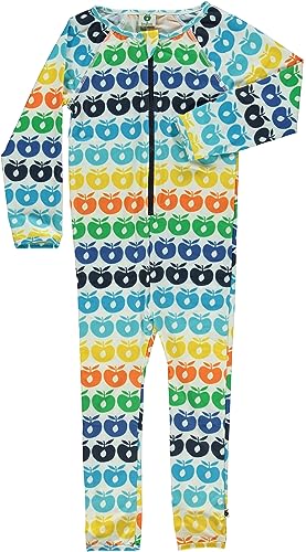 Småfolk UV50 Swimwear Suit LS. Mini retro Apples, Blå atoll, 2-3 År