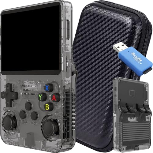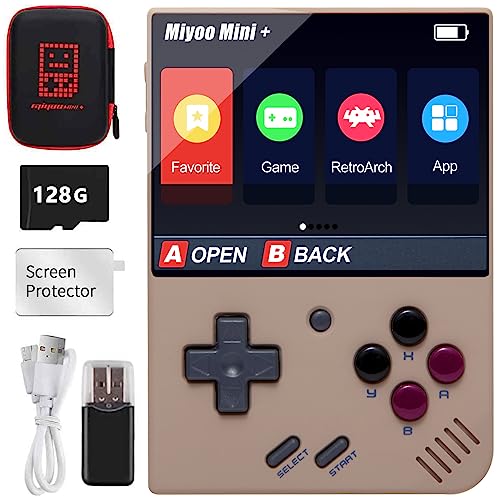 Miyo Mini Plus handhållen retro spelkonsol, inbyggt 128 G TF-kort, 15 000 klassiska spel, 3,5 tums IPS-skärm, stöder WIFI, med förvaringsväska (svart, 128 G)