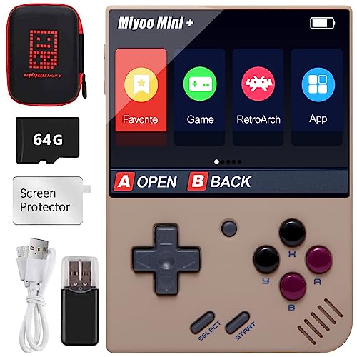 Miyo Mini Plus handhållen retro spelkonsol, inbyggt 64 G TF-kort, 7 000 klassiska spel, 3,5 tums IPS-skärm, stöder WIFI, med förvaringsväska (grå, 64 G)