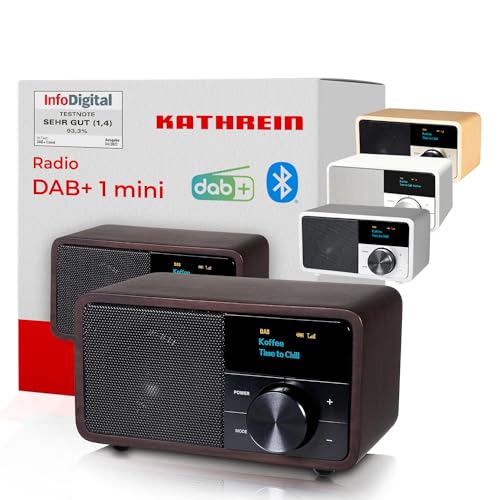 Kathrein DAB+ 1 Mini I DAB Plus-radio med batteri I digital radio DAB+ & FM med Bluetooth, AUX 3,5 mm I köksradio, badrumsradio I bärbar radio som högtalare för strömning I retro design trä